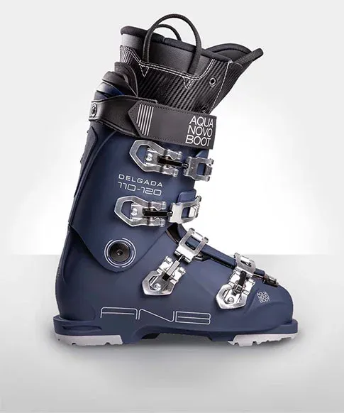 Somit sorgt der Delgada für eine sensationelle Kraftübertragung auf die Kante des Skis und eine völlig neues Fahrerlebnis für Sportlerinnen und Sportler mit sehr schlanken Füßen und Fesseln. Der Härtegrad ist zwischen Flex 110 und Flex 120 einstellbar. Wie bei jedem AquaNovoBoot ist die im Silikon-Sandbett maßangefertigte 3D-Einlegesohle im Preis inklusive.